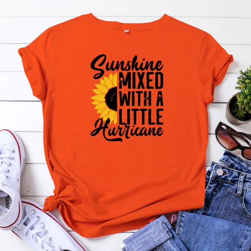 funny Creative Sunflower Letters Printed graphic t shirts womens Short sleeve tee Women's cotton t-shirt free shipping