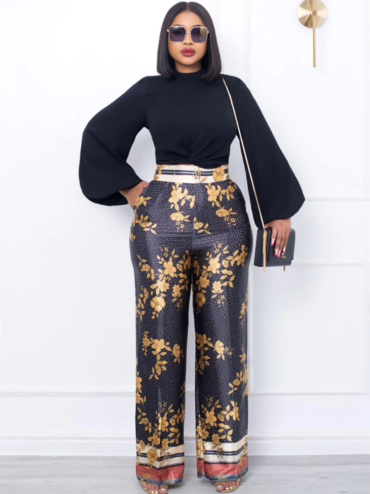 Африканская одежда, женская летняя модная африканская Женская одежда с длинным рукавом и круглым вырезом, принт из полиэстера, комплект из ...