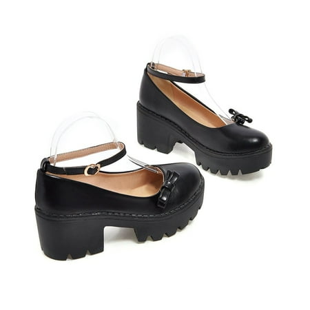 IELGY Women s platform shoes shallow mouth buckle round toe mid-heel thick heel