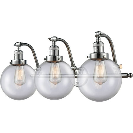 Polished Chrome Tone Bathroom Vanity 28 Wide Clear Glass Steel/Cast Brass Medium Base LED 3 Light Fixture
