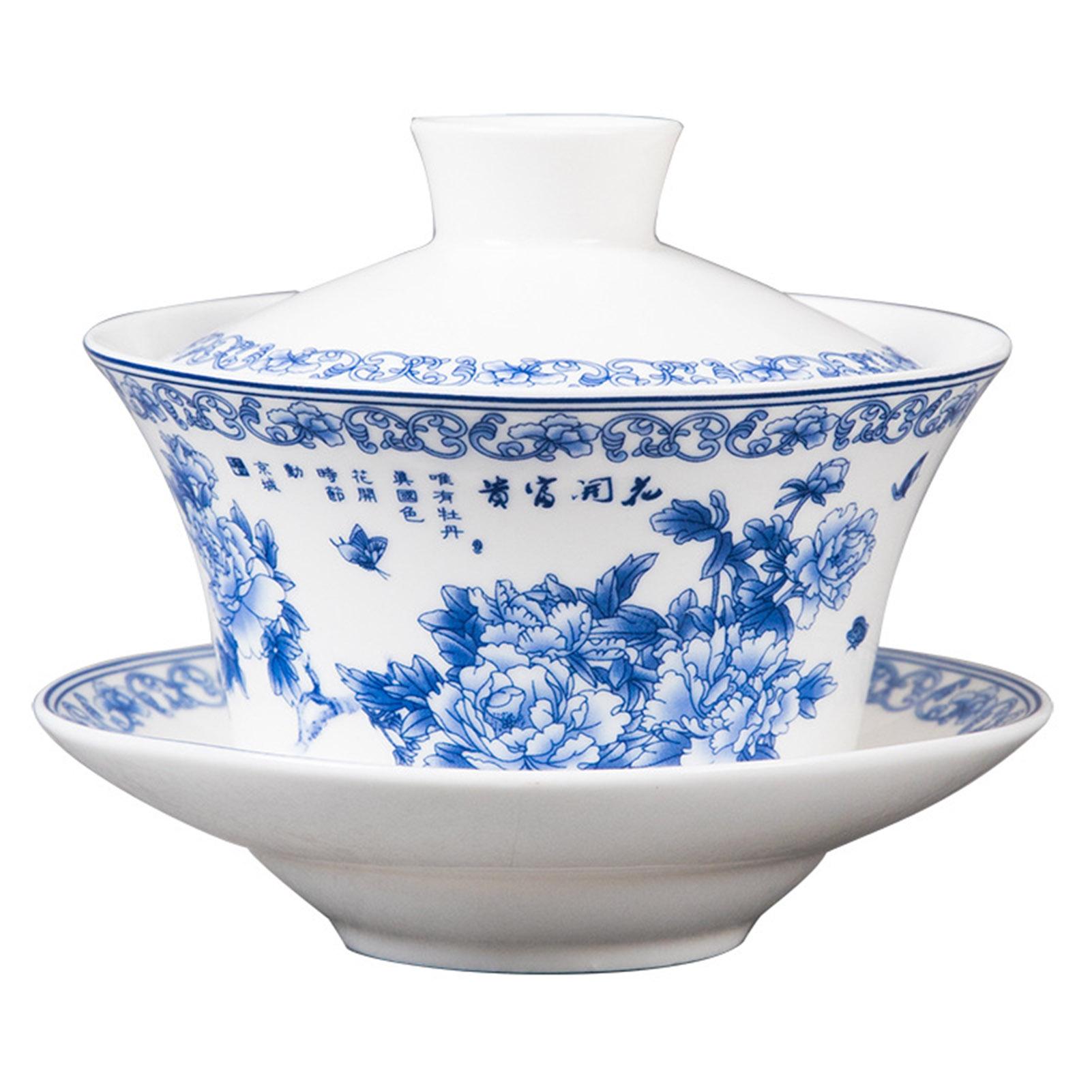 Традиционный чайный набор гайвань 200 мл с фарфоровой чашкой, блюдцем и крышкой. Великолепный цветочный узор. Набор для чаепития кунг-фу. Портативная чайная посуда.