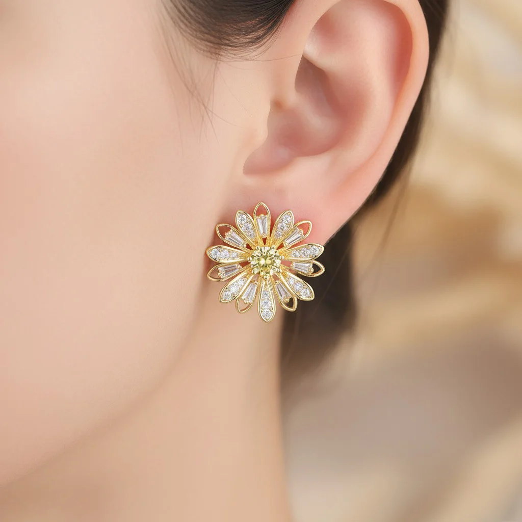 New Fashion Vintage Zircon Flower Stud Earring Brass Women Romantic Luxury Unique Jewelry for Women Daily Holiday Accessories