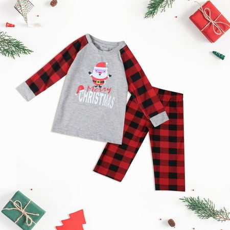 ERTUTUYI Matching Family Pajamas Sets Christmas Plaid Printed Holiday Sleepwear Long Sleeve Tee And Bottom Loungewear (Kid) Gray 2T