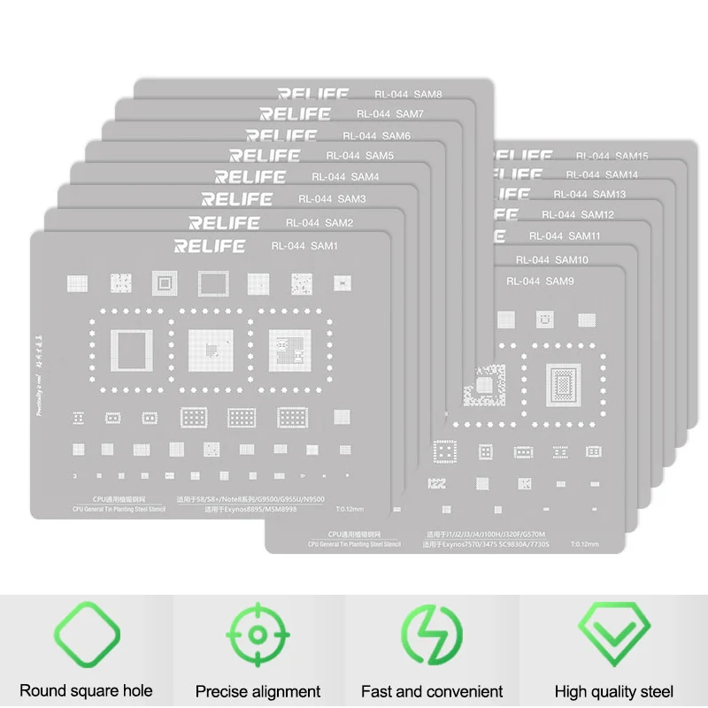 Трафарет RELIFE для реболлинга BGA, стальная сетка для посадки, Оловянная сетка для Samsung Galaxy Note S9 S10 S20 S21 A520 A9 J2 J4 A5 A7, ремонт микросхем