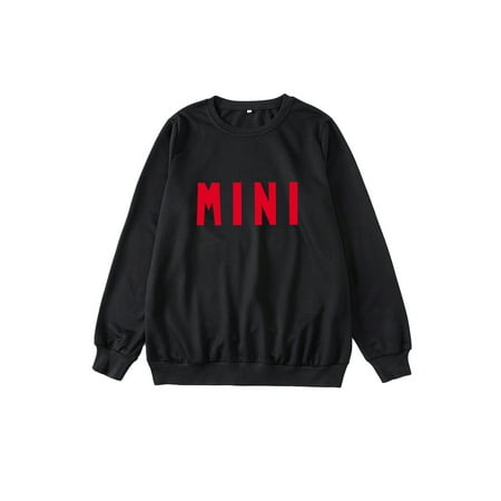 Frobukio Christmas Family Matching Sweatshirt Letter Print Long Sleeve O-Neck Pullover Casual Mom Child Tops Black Kids 3-4 Years
