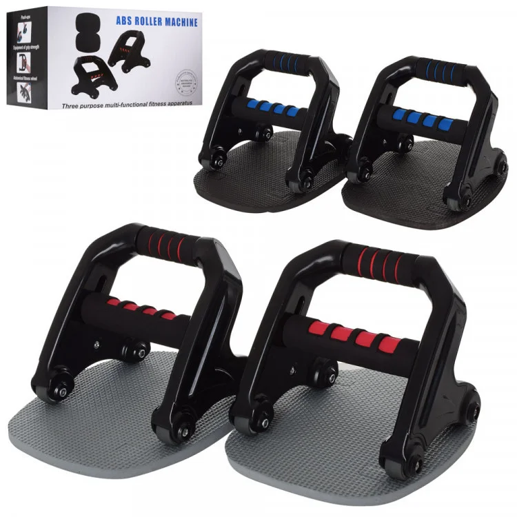 Тренажер, 3 в 1, упоры, эспандер, колеса для пресса, мышц рук, груди, плеч, пояса, 2 цвета (MS-2743)