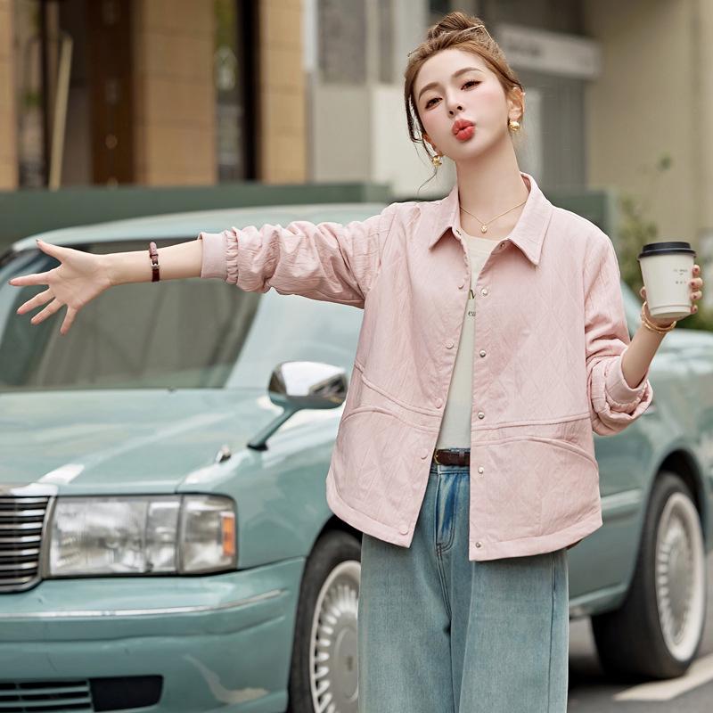 Трендовая женская приталенная повседневная куртка: Модный воротник рубашки, Свободный крой, Весна/Осень 2025 Medium вишневый розовый
