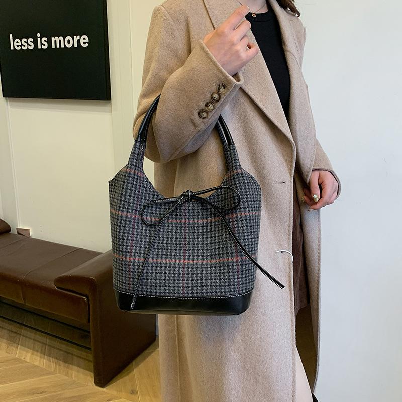 Трендовая клетчатая повседневная контрастных цветов модная ретро наплечная сумка 2025 осень-зима новая высококлассная женская сумка под мышкой 37*12*27 чёрный