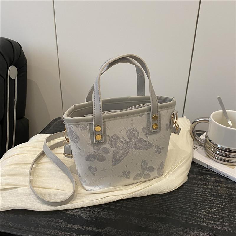 Трендовая милая печать простая модная сумка-ведро женская новая летняя универсальная повседневная личность премиум сумка-мессенджер серебряный
