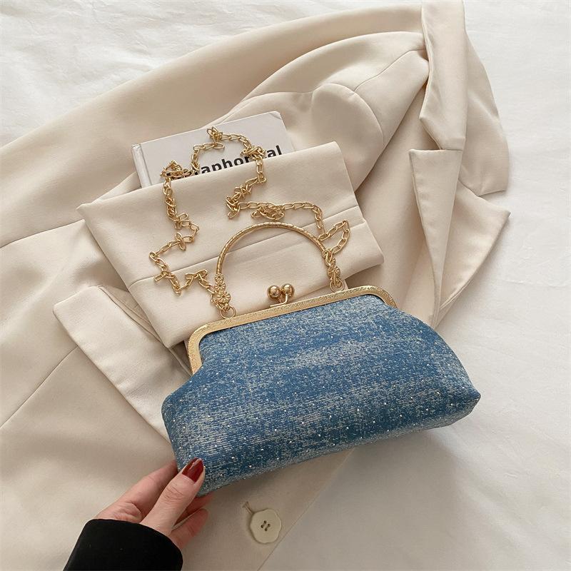 Трендовая модная сумка-цепочка женская 2025 лето новая простая на плечо сумка-ракушка повседневная сумка-мессенджер маленькая квадратная сумка небесно-голубой