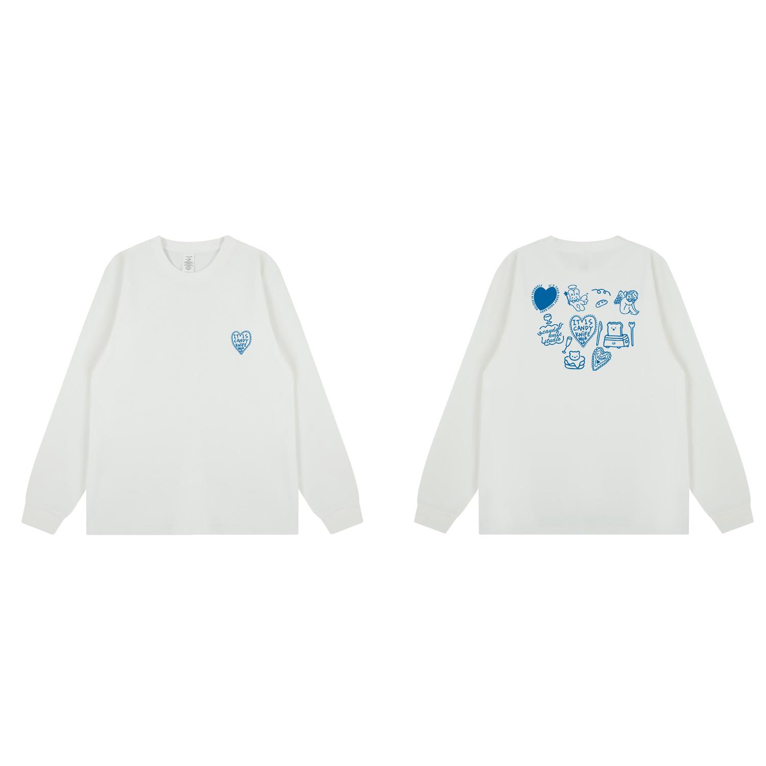 Трендовая футболка с длинным рукавом в корейском стиле, свободного кроя, из хлопка, с мультяшным принтом в виде сердца для пары 3XL белый