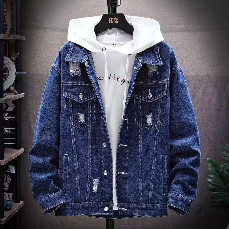 Трендовая японская джинсовая куртка в стиле ретро 2024: Унисекс Свободный Повседневный Уличный Стиль Large темно-синий