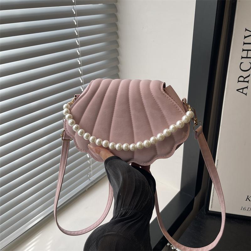 Тренд Индивидуальность Вмятина Весна Новая Мода Простая Жемчужная Портативная Сумка Кроссбоди На Плечо Ракушка Женская Легкая Роскошь розовый