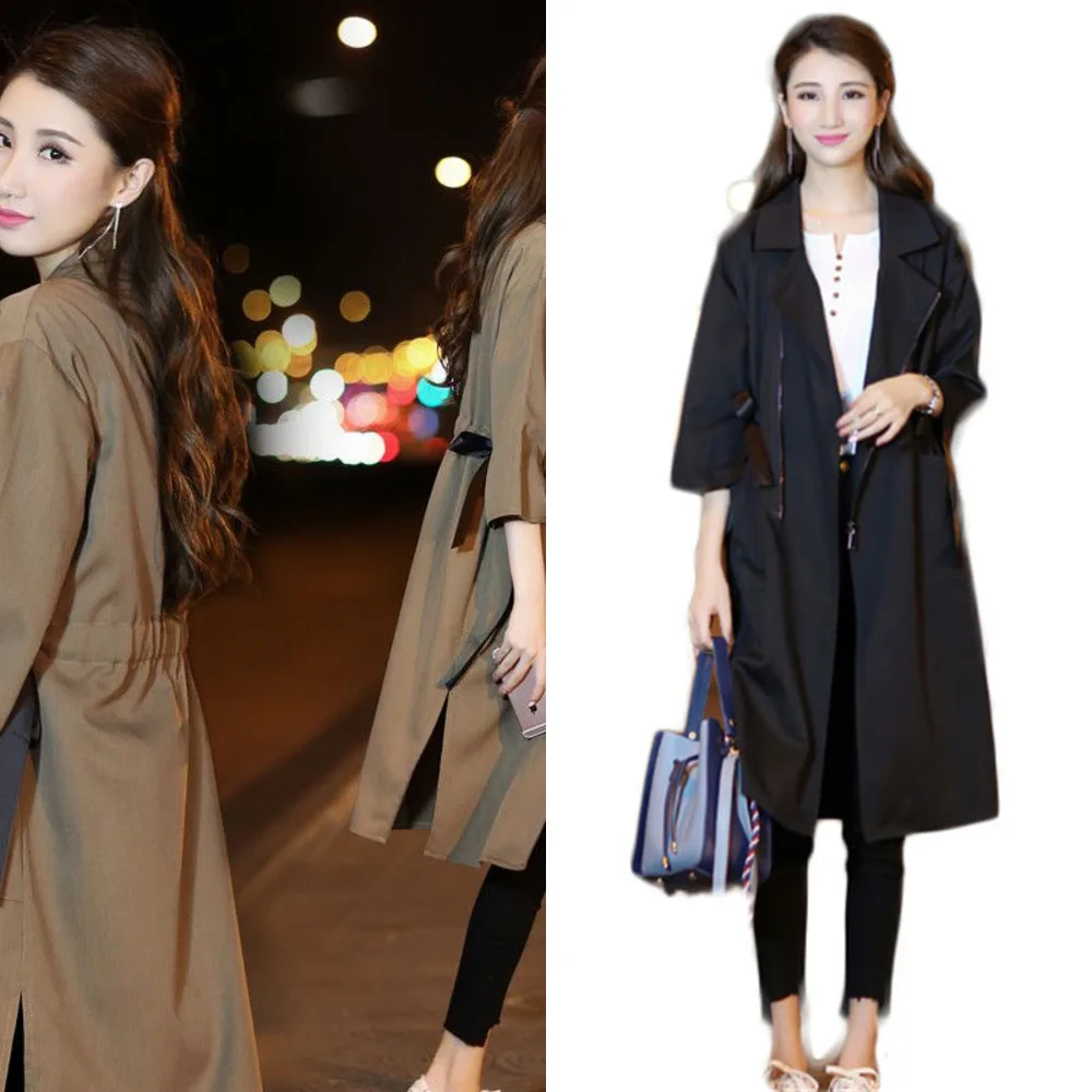 Тренчкот женский на молнии, приталенное длинное пальто с поясом, ветровка, зимний сезон M233