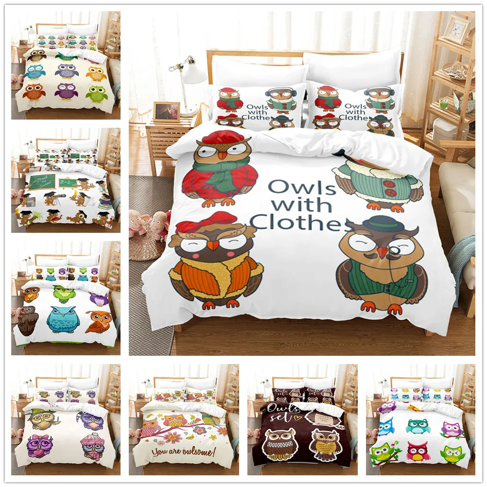 Комплект постельного белья с мультяшным изображением милой совы, комплект пододеяльника, постельное белье с рисунком животных, домашний Семейный комплект детской одежды, для мальчиков и девочек