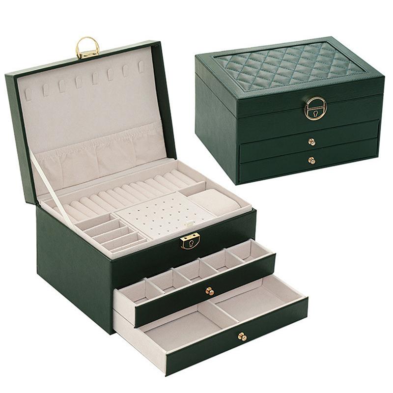 Трехслойная большая емкость для ожерелья с бусинами и жемчугом, браслета, кольца, ожерелья, часы, коробка для хранения, ювелирные изделия, витрина темно-зеленого