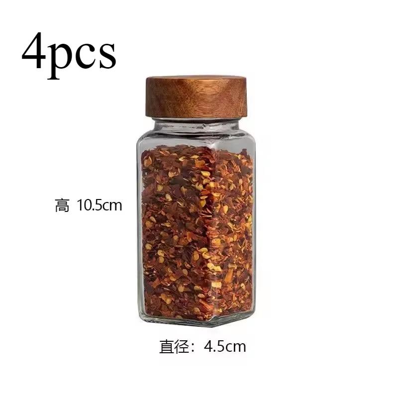 Трехслойная крышка из акации, кухонная полка, квадратные стеклянные держатели для бутылок с приправами, 4 унции, банки для специй и приправ