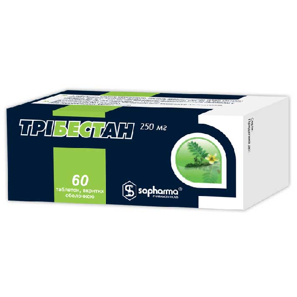 Составдействующее вещество: якорьков стелющихся травы экстракт сухой (35-45: 1);1 таблетка, покрытая оболочкой, содержит якорьков стелющихся травы экстракт сухой ( Tribulus terrestris herba extractum siccum), (35-45: 1), (экстрагент: метанол 80%) - 250 мг, что соответствует фуростанолового сапонинам в пересчете на протодиосцин - 112, 5 мгВспомогательные вещества: целлюлоза микрокристаллическая, кремния диоксид коллоидный, повидон, кросповидон, магния стеарат, талькпленочное покрытие: Опадрай АМВ 80W26601 коричневый (частично гидролизованный поливиниловый спирт, тальк, титана диоксид (Е 171), железа оксид красный (Е172), железа оксид черный (Е172), лецитин, ксантановая камедь, железа оксид желтый (Е172) ).Лекарственная форма. Таблетки, покрытые оболочкой.Основные физико-химические свойства: круглые двояковыпуклые таблетки, покрытые оболочкой, коричневого цвета со специфическим запахом.Фармакологическая группа.Средства, применяемые в урологии.Код АТХ G04B X.Фармакологические свойства.Фармакологические.Препарат природного происхождения, полученный по оригинальной технологии из наземной части растения Tribulus Terrestris L. Лекарственное средство содержит преимущественно стероидные сапонины фуростанолового типа, среди которых преобладает протодиосцин. Механизм действия препарата обусловлен этой составляющей.Протодиосцин метаболизируется в организме до дегидроэпиандростерона (ДГЭА), который благоприятно влияет на проницаемость клеточной мембраны, эректильную функцию, метаболизм холестерина и иммунитет. Другие активные фуростанолови сапонины, входящие в состав экстракта растения Tribulus Terrestris L. , вероятно, модулируют эффект протодиосцина.Трибестан имеет общетонизирующее действие и стимулирует некоторые функции половой системы. У мужчин восстанавливает и улучшает либидо и эрекцию. Оказывает стимулирующее влияние на сперматогенез, увеличивая количество сперматозоидов и их подвижность, повышает уровень тестостерона. У женщин Трибестан также улучшает либидо, стимулирует овуляцию. Вазомоторные проявления при естественном и посткастрационном климактерическом синдроме вследствие его балансирующей воздействия на гормональную активность.Результаты у здоровых добровольцев показывают, что Трибестан влияет на сывороточный уровень гормонов гипофизарно-гонадной оси, существенно не меняя уровни гормонов надпочечников и АКТГ.Трибестан имеет гиполипидемическое эффект, причем у пациентов с дислипопротеинемией значительно снижает уровень общего холестерина и ЛПНП (липопротеинов низкой плотности) без существенного влияния на уровень триглицеридов и ЛПВП (липопротеинов высокой плотности) в сыворотке крови.Трибестан оказывает антигипертензивное и диуретическое действие.Фармакокинетика.Активное вещество протодиосцин быстро выводится из плазмы - уже в течение трех часов его концентрация незначительна. Выводится преимущественно с желчью. Низкий процент выделения неизмененного протодиосцина сравнению с принятой дозой подтверждает предположение, что он интенсивно метаболизируется в организме.Клинические характеристики.Показания.Для профилактики и лечения (монотерапия и комплексное) половых расстройств у мужчин и женщин. При эректильной дисфункции мужчинам для усиления либидо, силы и продолжительности эрекции. В качестве монотерапии или в комплексной терапии о