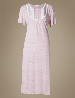 Трикотажная ночная рубашка с мелким рисунком и кружевом кроше
