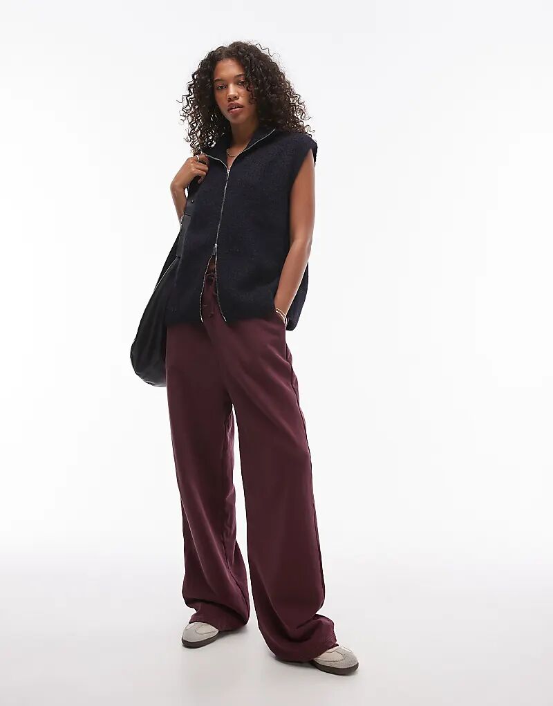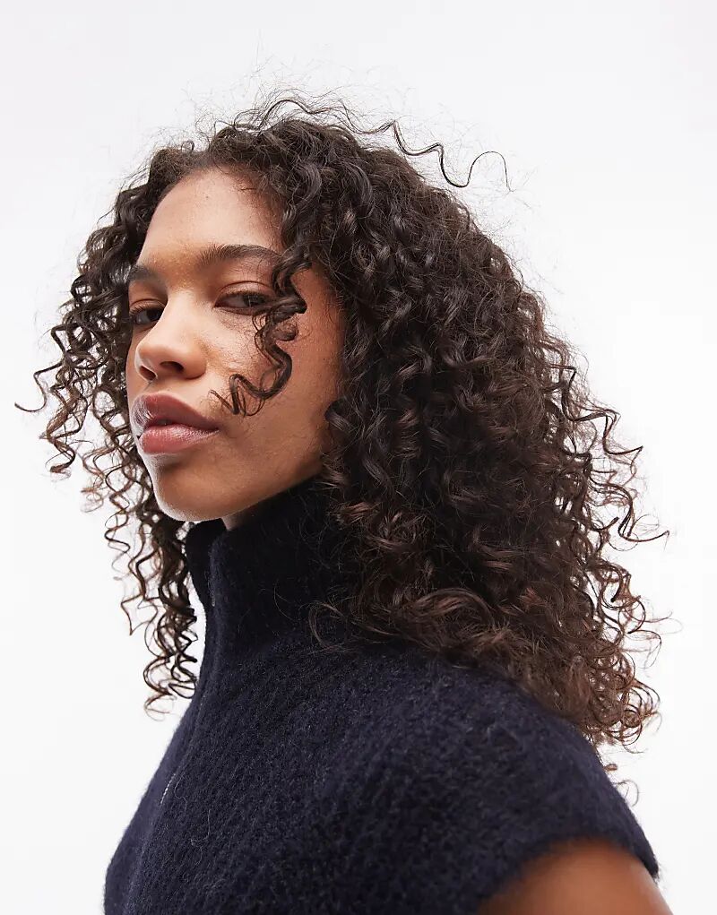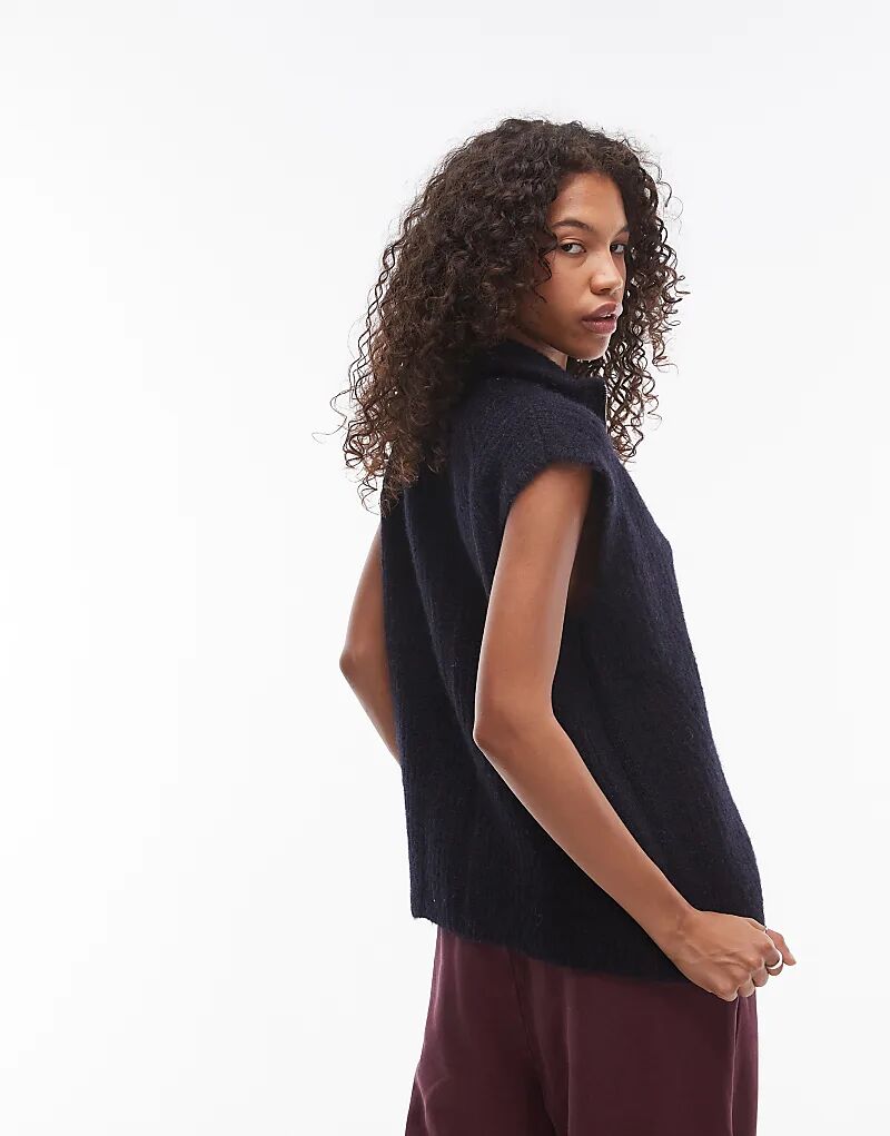 Трикотажная удлиненная майка-молния большого размера в темно-синем цвете Topshop