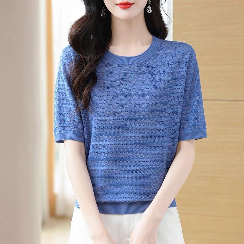 Трикотажная футболка с короткими рукавами, женская летняя, свободный трикотажный топ с круглым вырезом 3XL