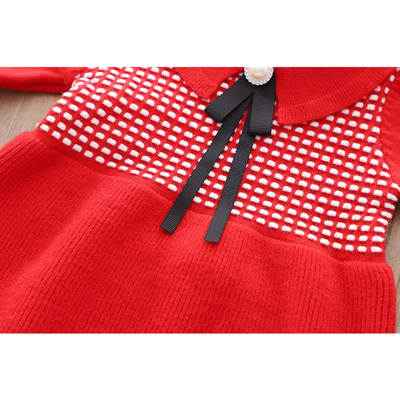 Трикотажное платье-свитер с длинным рукавом и кукольным воротником