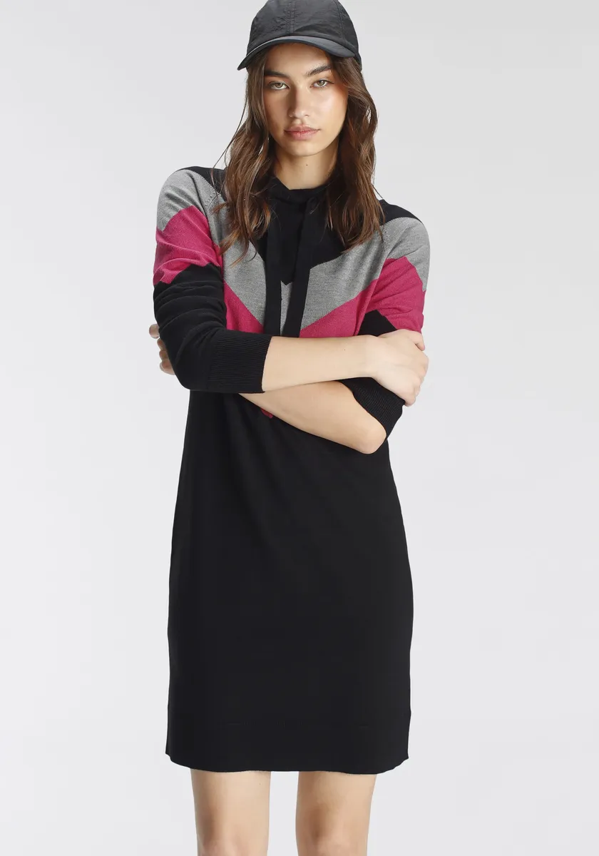 Трикотажное платье Tamaris с капюшоном, цвет Schwarz Offwhite Pink