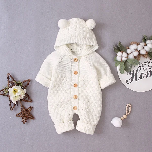 Трикотажный комбинезон с капюшоном для новорожденных мальчиков и девочек