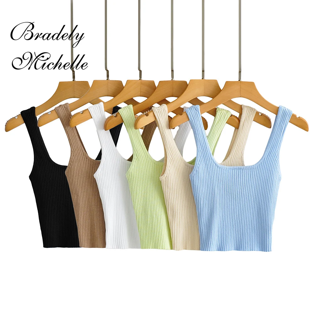 Трикотажный короткий жилет на бретельках с квадратным воротником, Новинка лета 2023, сексуальный женский жилет на бретельках, майка