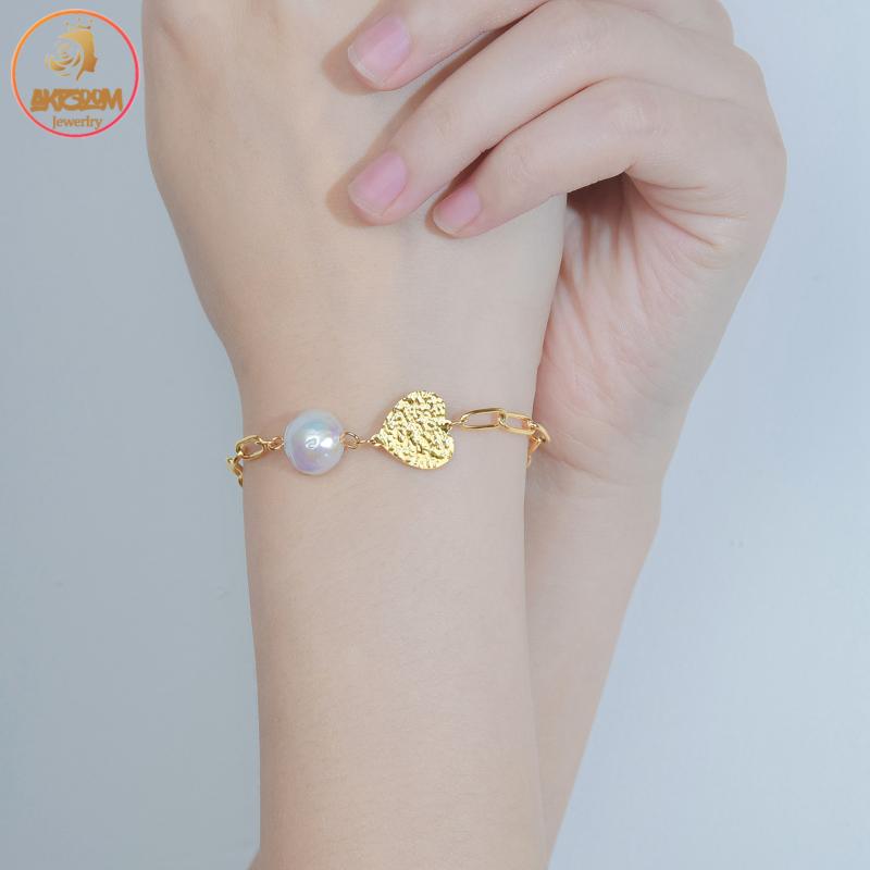 Link, Chain Akizoom Simple Heart Pearl Bracelet Fashion Stainless Steel Bangles For Women Girl Unisex Wrist Jewelry Birthday Gift