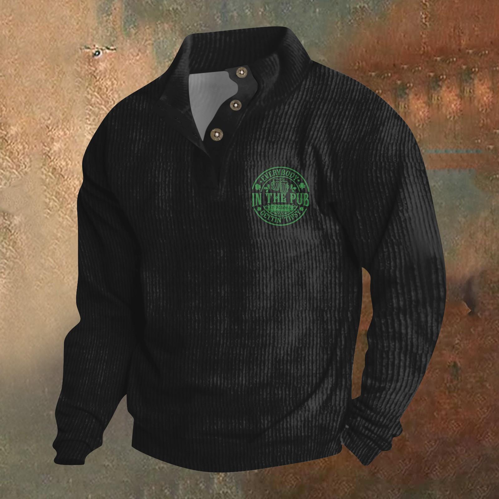 Трикотажный принт на 3 пуговицах - вельветовый мужской свитшот со стоячим воротником и карманом, повседневный свитшот на пуговицах для активного отдыха XL бежевый