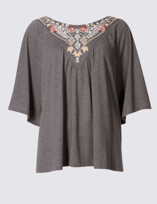 Трикотажный топ свободного кроя с вышивкой на груди, Серый микс