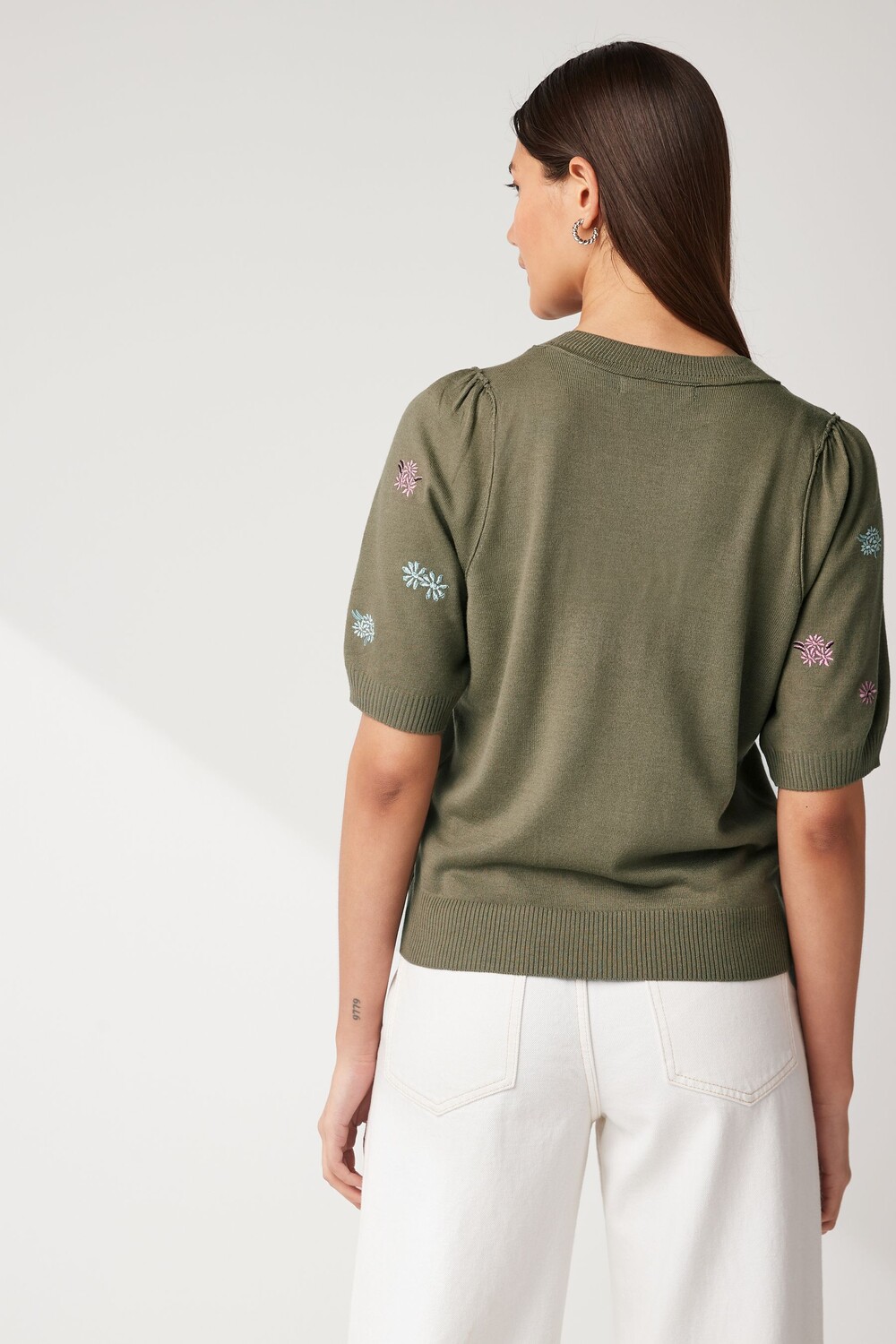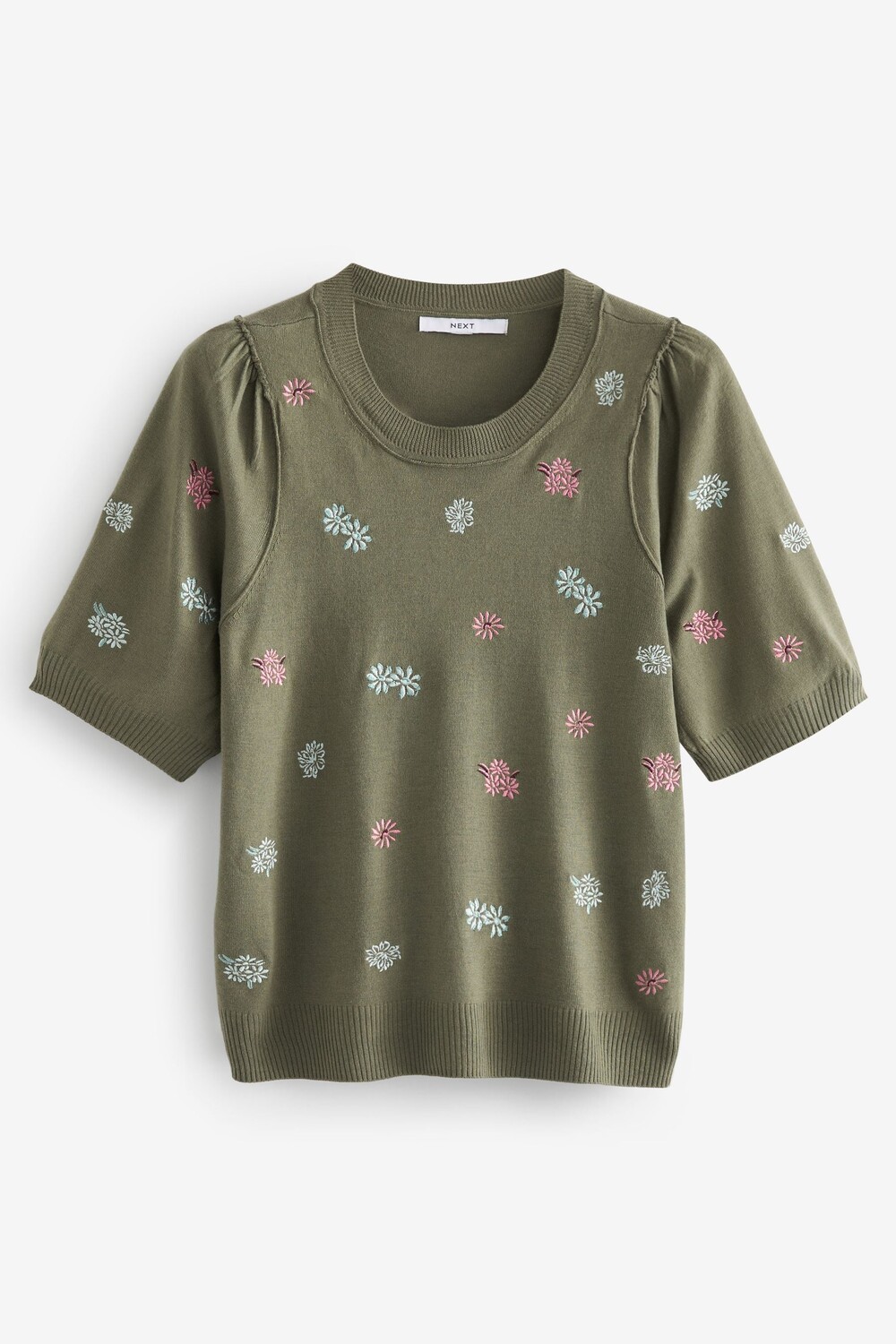 Трикотажный топ с круглым вырезом и короткими рукавами Next, зеленый