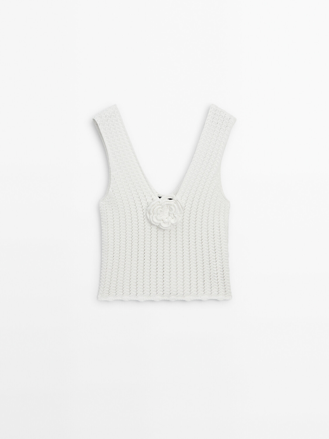 Трикотажный топ с цветочным узором Massimo Dutti, кремовый, Белый, Трикотажный топ с цветочным узором Massimo Dutti, кремовый