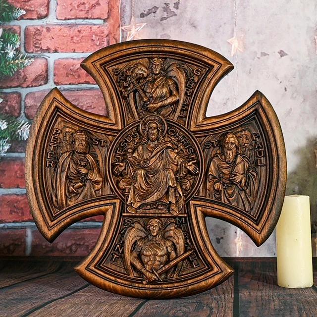 Троица Иисус и Мария Деревянный Крест Католический Домашний Декор Ручной Работы, Настенная Статуэтка, Подарок Христу 25cm