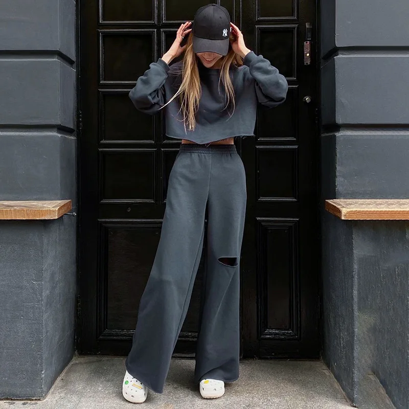 Женский пуловер с длинным рукавом, Повседневная Блузка с вырезом, брюки с высокой талией и широкими штанинами, 3 цвета, осень 2021