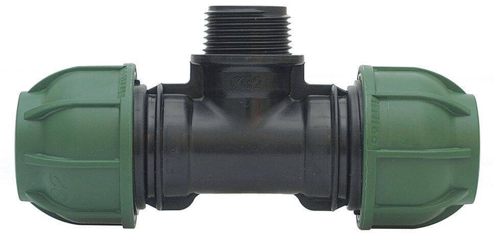 Компрессионные резьбовые ПЭ тройники Ирритек были разработаны для более надежного соединения полиэтиленовых труб для транспортировки жидкостей под давлением до 10 бар.