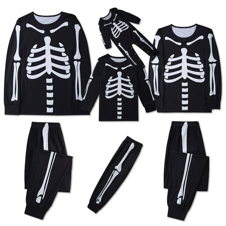 Pajamas for Family 2022 Skeleton Print Tops Lounge Bottoms Xmas Clothes for Teens Womens Mens