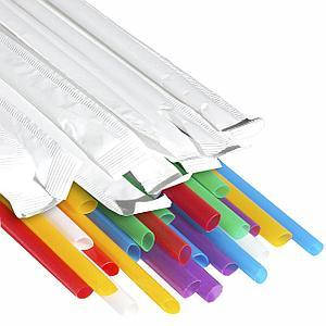 Трубочка для коктейлей 6.8 мм 21 см 300 шт микс цветов в индивидуальной упаковке.