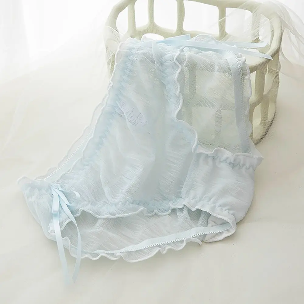 Трусики женские бесшовные из шелковой ленты, с бантиком и сеткой
