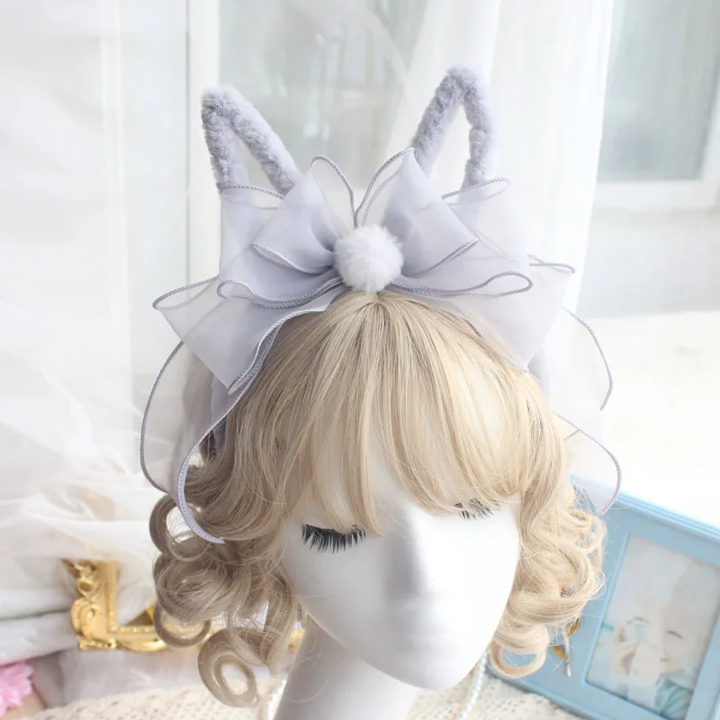 Origional Lolita Furry Ball KC Angel Street Cute Rabbit Eared Fluffy Hair Band Lolita Headdress