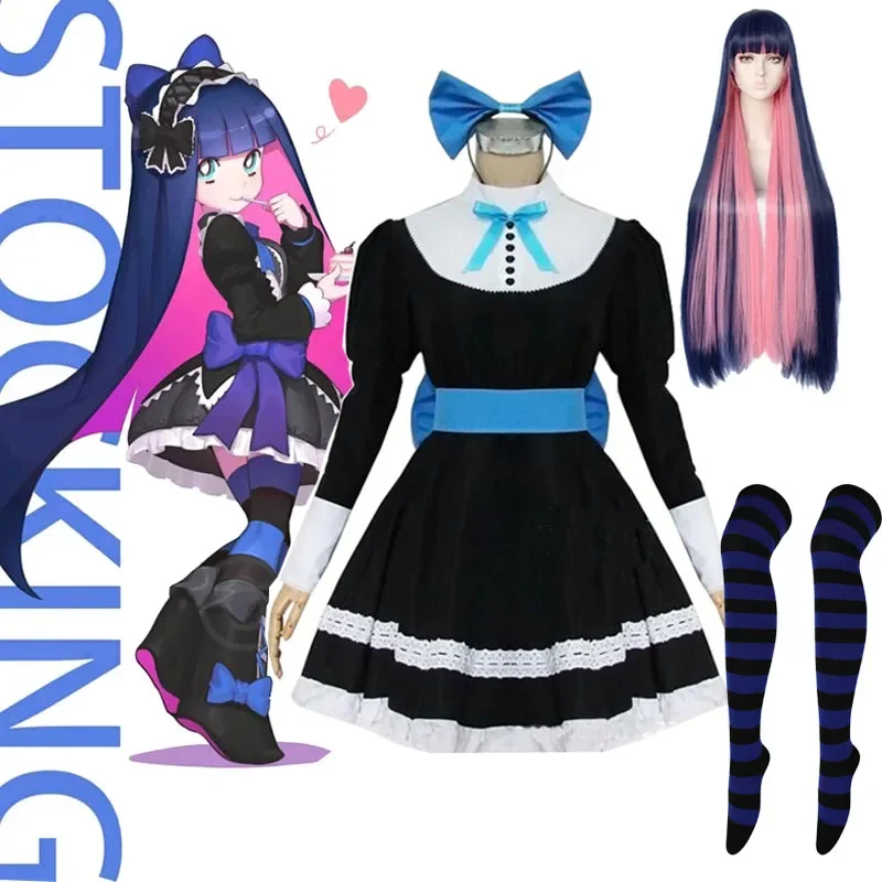 Трусики и чулки с подвязкой Heroine анархия чулки Косплей Костюм черные платья Длинные Голубые розовые чулки парик