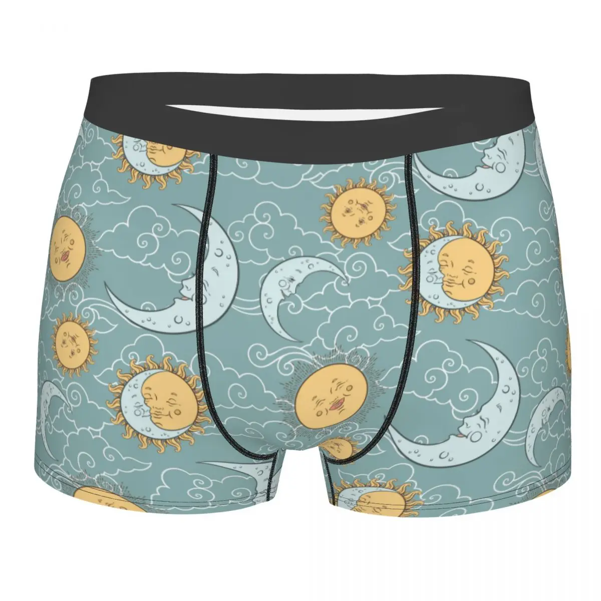 Трусы-боксеры Мужские дышащие, нижнее белье, мягкие, небесные тела, луна, солнце, звезды и облака, брифы