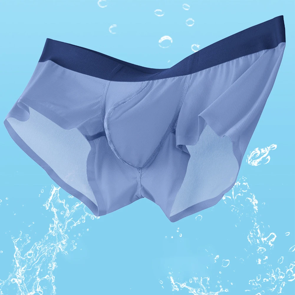 Трусы-боксеры мужские из вискозы, прозрачные плавки, нижнее белье, шорты с пусетами, дышащие трусы