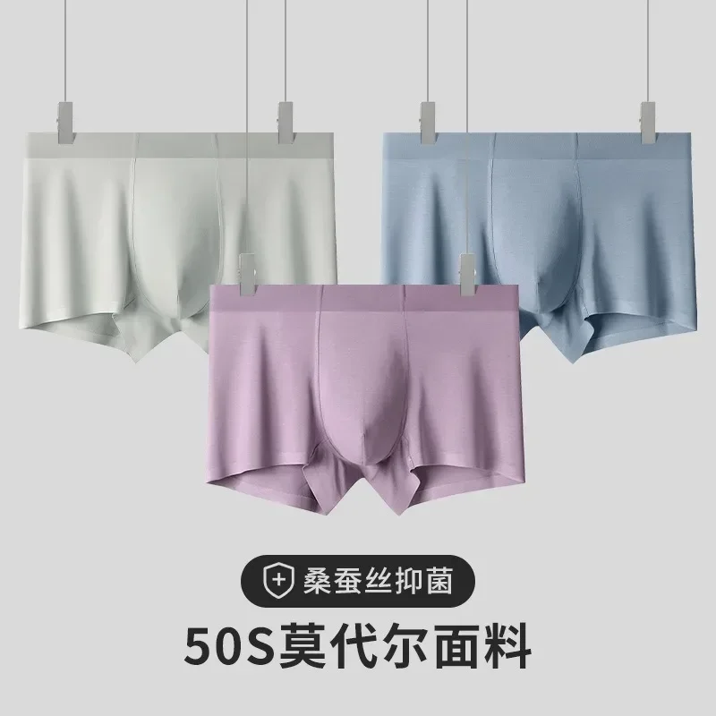 Трусы-боксеры мужские из шелка тутового шелкопряда, антибактериальные, дышащие