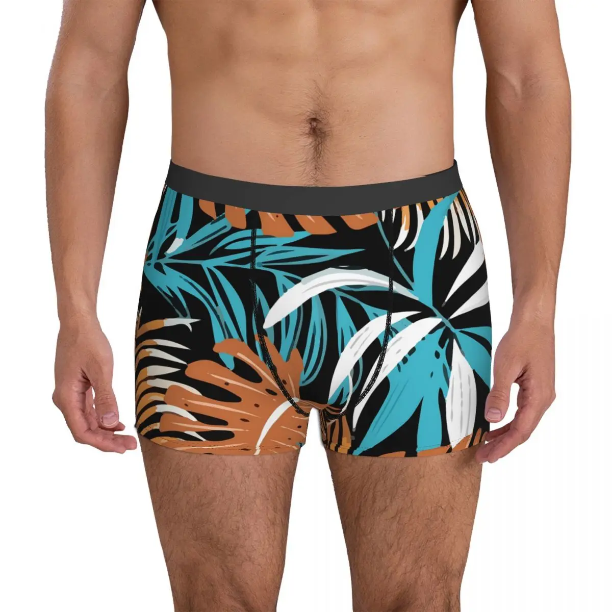 Трусы-боксеры мужские с принтом листьев, нижнее белье с тропическими растениями, дышащие шорты-боксеры, большие размеры