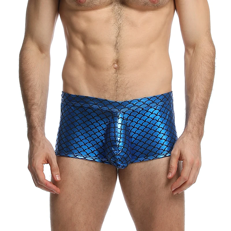 Трусы-боксеры Pinkysenson мужские, пикантное нижнее белье с U-выпуклой кожей рыбьей шкуры, стринги, мужские трусы