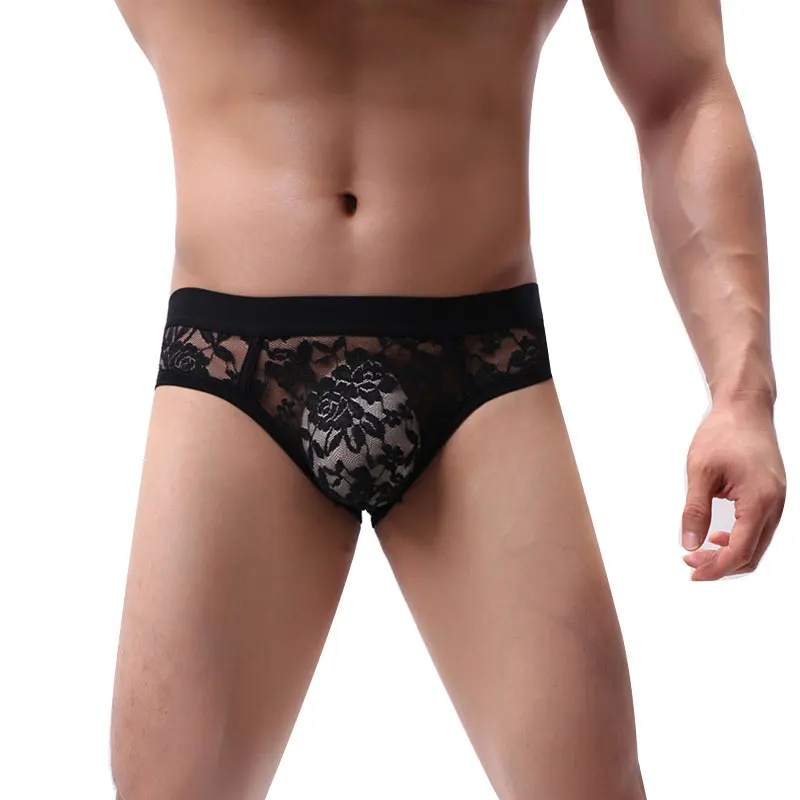 Трусы-брифы мужские с цветочным принтом, кружевное нижнее белье, пикантное удобное Прозрачное нижнее белье