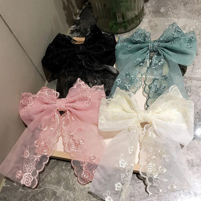 Korean Lace Large Ribbon Bow Hairpin Sweet Ins Wind Edge Clip Super Fairy Hair Bows Hairpin Sweet Women Girls Hair Accessories