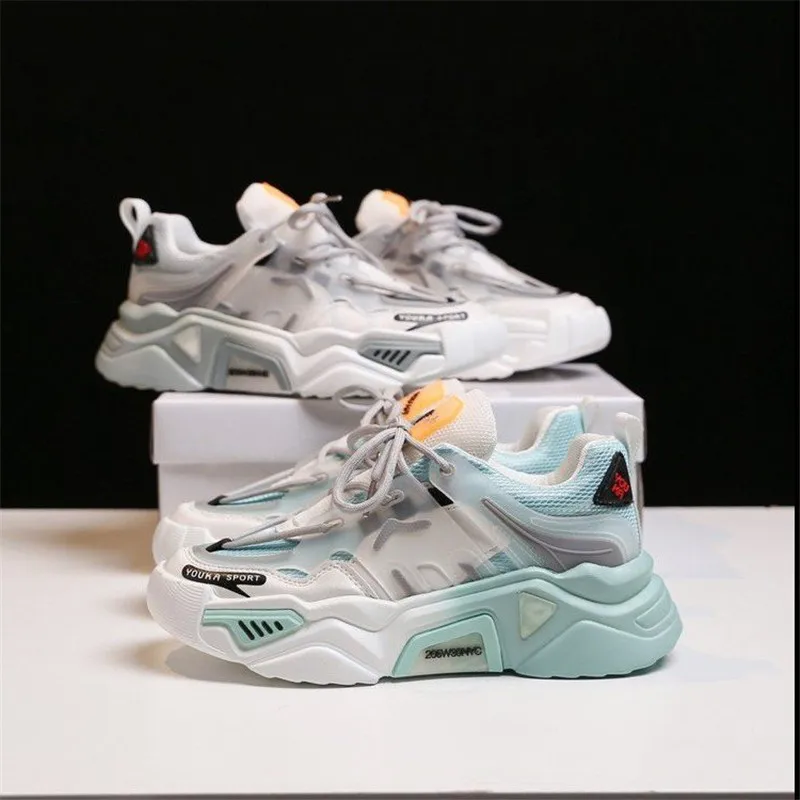 2020 Spring Women's Chunky Sneakers Fashion Wild Women Platform Shoes Lace Up Breathable Shoes Women Female Trainers Dad Shoes